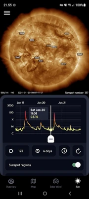 Lebih dari sekadar peringatan, aplikasi ini membawa Anda lebih dekat ke jantung dinamika angkasa. Pantau aktivitas geomagnetik mendekati waktu nyata, bersumber dari lebih dari 110 magnetometer global, memberikan wawasan mendalam tentang kondisi medan magnet bumi. Jelajahi matahari kita yang dinamis melalui pemutar citra surya canggih, lengkap dengan grafik sinar-X dan identifikasi wilayah aktif matahari. Pahami lebih lanjut tentang cuaca antariksa dengan visualisasi grafik angin surya dan perkiraan indeks Kp, yang semuanya esensial untuk memprediksi tampilan aurora.