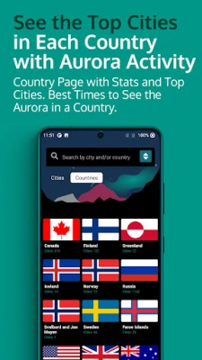 Dengan peta aurora interaktif waktu nyata, Anda dapat melihat intensitas aktivitas aurora secara langsung dan menelusuri lokasi yang dipantau. Fitur ini sangat memudahkan pencarian destinasi wisata aurora impian Anda. Temukan laporan prakiraan aurora mendalam untuk kota atau negara mana pun melalui halaman pencarian kami yang intuitif. Anda bahkan dapat menambahkan kota favorit Anda untuk akses cepat di kemudian hari, tanpa perlu mendaftar akun.