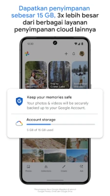 Abadikan setiap momen berharga Anda dengan Google Foto, sebuah rumah digital yang aman untuk semua kenangan Anda. Setiap akun Google menyediakan ruang penyimpanan 15 GB tanpa biaya*, tiga kali lipat dari banyak layanan serupa, memastikan Anda memiliki ruang lapang untuk mencadangkan dan menyimpan foto serta video secara otomatis di seluruh perangkat. Dengan infrastruktur keamanan Google yang canggih, kenangan Anda tetap terlindungi sepenuhnya, baik saat disimpan maupun ketika Anda membagikannya, memberikan ketenangan pikiran yang tak ternilai.