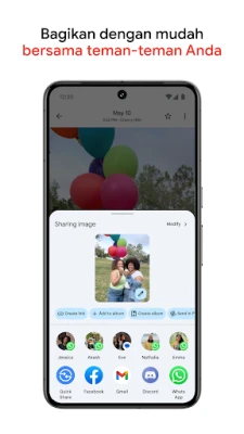 Rasakan kemudahan mengelola galeri yang rapi dan terpersonalisasi berkat Google Foto. Aplikasi ini secara cerdas mengatur foto duplikat atau serupa ke dalam kumpulan, serta menyediakan folder intuitif untuk tangkapan layar, dokumen, dan album khusus. Penelusuran momen favorit pun menjadi sangat sederhana; cukup deskripsikan secara alami, seperti 'Alin dan aku lagi ketawa' atau 'Ema melukis di halaman belakang', dan aplikasi akan menemukannya untuk Anda. Manfaatkan juga alat pengeditan berbasis AI revolusioner, seperti Penghapus Ajaib untuk menghilangkan objek mengganggu, fitur Hilangkan blur untuk mengembalikan ketajaman, dan Pencahayaan Potret untuk mencerahkan foto Anda dengan beberapa ketukan saja.
