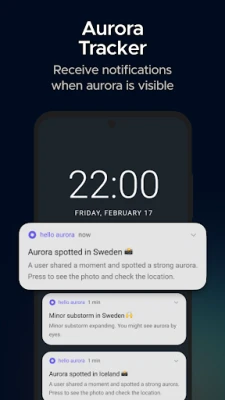 Saksikan keindahan Aurora Borealis, tak peduli di mana pun Anda berada, dengan Hello Aurora. Bergabunglah dengan lebih dari 234.000 pengguna terdaftar yang mengandalkan aplikasi ini untuk informasi aurora secara *real-time* dan peringatan yang disesuaikan. Hello Aurora menghadirkan data terbaru setiap beberapa menit, memastikan Anda tidak akan melewatkan momen magis saat Cahaya Utara menampakkan diri di area Anda, atau ketika pemburu aurora lain membagikan penampakan langsung di seluruh dunia. Dapatkan notifikasi instan dan lihat laporan *live* melalui peta interaktif kami, menjadikan setiap pengalaman berburu aurora lebih mudah dan memuaskan.