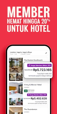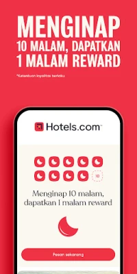 Jelajahi dunia dengan Hotels.com, pendamping perjalanan utama Anda yang membuka pintu menuju keuntungan eksklusif. Sebagai anggota, Anda berhak menikmati harga khusus dengan diskon minimal 10% di lebih dari 100.000 hotel pilihan di seluruh penjuru bumi. Kumpulkan reward dengan cepat di lebih dari setengah juta properti akomodasi, membuat setiap malam menginap menjadi investasi berharga untuk petualangan berikutnya. Anggota Silver dan Gold bahkan dapat menikmati manfaat perjalanan tambahan yang tak tertandingi di properti VIP Access tertentu, memastikan setiap perjalanan Anda terasa lebih istimewa.