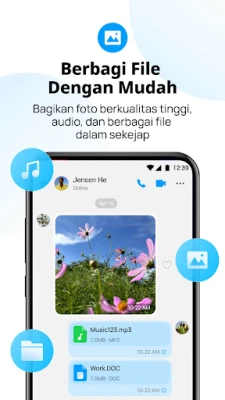 Lebih dari sekadar panggilan, imo juga merupakan platform perpesanan lengkap yang memudahkan setiap interaksi Anda. Kirim pesan teks, suara, atau berbagi foto dan video dengan kualitas aslinya ke mana saja. Kebutuhan untuk mengirim dokumen penting? imo mendukung berbagai format seperti .DOC, .MP3, .ZIP, atau .PDF, semuanya dengan mudah. Seluruh riwayat percakapan dan berkas Anda secara otomatis tersimpan aman di imo Cloud, membebaskan ruang penyimpanan di perangkat dan memastikan akses yang mudah kapan pun dibutuhkan. Semua berbagi berkas dilindungi enkripsi end-to-end, menjamin keamanan maksimal.