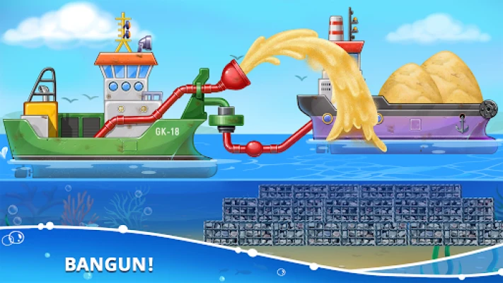 Perjalanan pembangunan dimulai jauh di bawah permukaan laut. Para pembangun harus mengerahkan tim penyelam dan sonar untuk menemukan lokasi dasar laut yang ideal dan aman. Setiap misi pembangunan diawali dengan tantangan puzzle menarik, di mana anak-anak merakit berbagai jenis kapal konstruksi yang sangat penting. Setelah kapal dirakit, pastikan untuk mengisi bahan bakarnya di stasiun terapung sebelum mengirimnya menjalankan tugas spesifiknya. Saksikan kapal-kapal ini bekerja keras, dari meletakkan fondasi hingga mengangkat daratan ke permukaan, menciptakan pengalaman visual yang memukau bagi anak-anak saat mereka mengendalikan tangan mekanik untuk membersihkan kapal setelah beraksi.