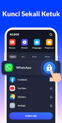 Dengan Kunci Aplikasi, Anda dapat dengan mudah memperkuat pertahanan privasi Anda. Amankan setiap aplikasi, mulai dari platform media sosial populer seperti Facebook dan WhatsApp, surel pribadi di Gmail, hingga galeri foto dan video berharga Anda. Ubah media pribadi Anda menjadi brankas digital yang hanya bisa diakses dengan izin Anda. Pilih metode penguncian yang paling nyaman bagi Anda, apakah itu pola yang tidak terlihat untuk mencegah pengintip, atau sidik jari yang cepat dan responsif, semua dirancang untuk pengalaman keamanan yang mulus dan intuitif.